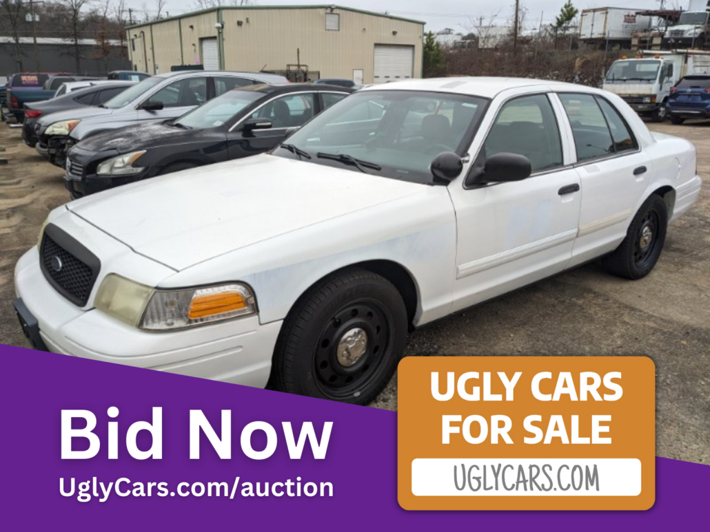 - Description: It's got a cop motor, it's got cop wheels, cop suspensions, cop shocks, 180k Runs Good on gas, However it does have a bad not cop Transmission so any correct year range Crown Vic transmission is an option or 6 Speed Manual Swap it and really have some fun, Clean inside and out, Because it can not be driven to inspection any further issues are unknown to us. For sale In-op As-is/Where-is. It's Going, Going, and soon will be GONE! This vehicle is still on the lot and for-sale but its also on an online auction @ UglyCars.com/auction So get buy the lot or bid on it online before its too late.